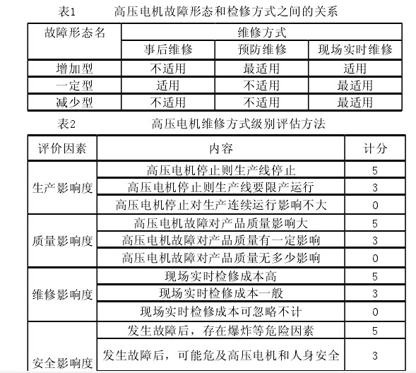 表1 高壓電機故障形態和檢修方式之間的關系